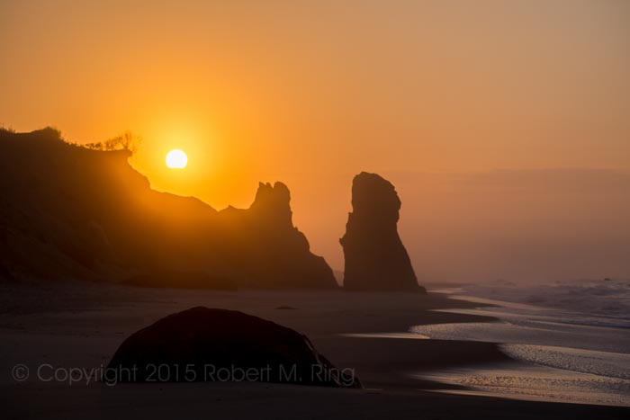 The sun rising up over 'sand sculptures' at Lucy Vincent Beach. Photo © copyright by Robert M Ring.